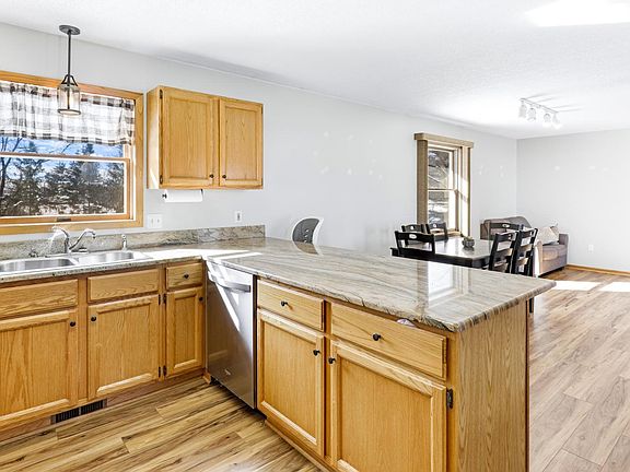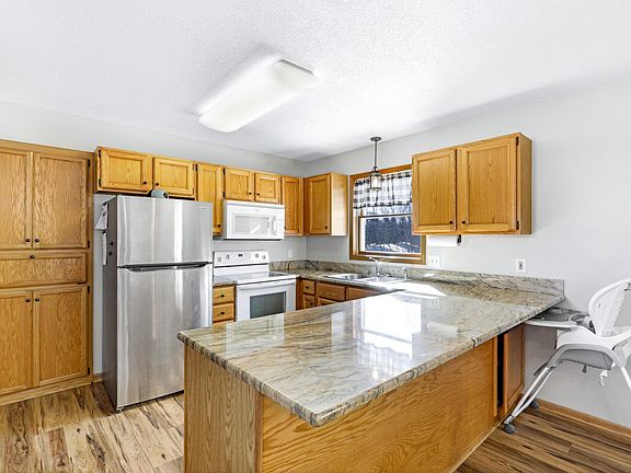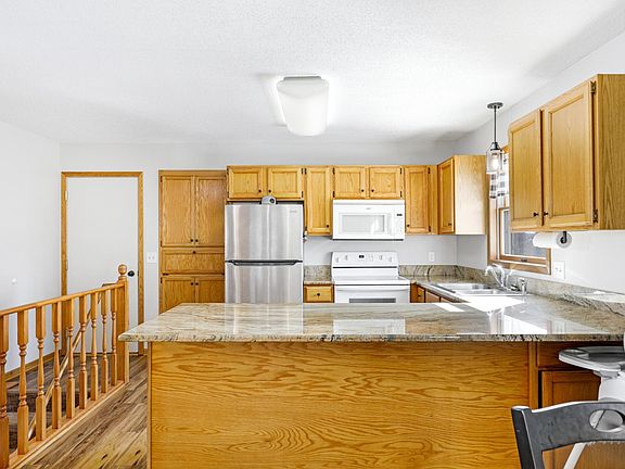 Charming Walk-Out Rambler in the sought after Elk Hills Area. Nestled at the end of a peaceful cul-de-sac, this beautiful walk-out rambler offers the perfect blend of privacy, space, and convenience. Set on a private ½ acre lot surrounded by lush mature trees, this home provides tranquility and stunning natural beauty year-round. Step into the spacious kitchen, featuring a large granite island and breakfast nook, perfect for casual dining and entertaining. Enjoy the fresh, modern look of new vinyl flooring in the kitchen, dining room, and living room. The finished lower level offers a large family room, two additional bedrooms and a walkout which provides direct access to your private backyard oasis. A generously sized storage room in the basement provides plenty of space to keep things organized. Enjoy the peace of mind that comes with newer appliances including Furnace, AC, Water Heater, Refrigerator, and Dishwasher— All replaced just 4 years ago. This prime location provides a serene, private atmosphere, yet is just minutes away from everything you need. Don’t miss this one! Move in ready and waiting for you to call it home!