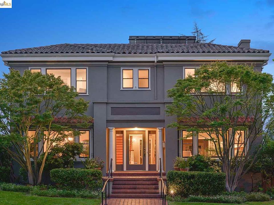 Sophisticated Prairie Style Traditional in the heart of Crocker Highlands w/ 75 WalkScore. Grand living room & dining areas, 2nd dining area, main level en-suite & rear sun room leading to private gardens. 5 full bedrooms & 2 bathrooms up, including master suite & large sunroom. Spacious lower level den with radiant heat concrete floors and fireplace. Level out rear gardens and patios with outdoor stainless kitchen for entertaining, play and space for the urban gardener. Newer 3-zone furnace system, commercial grade hot water heater, solar panels, lower level hobby/craft room, dedicated laundry room & detached garage. Minutes to the elementary & shops/restaurants of Grand/Lakeshore. Near Hwy 580, Bay Bridge to SF. and Transbay Bus Lines.