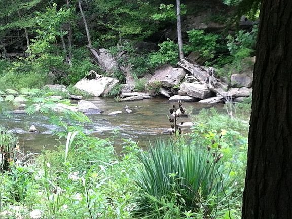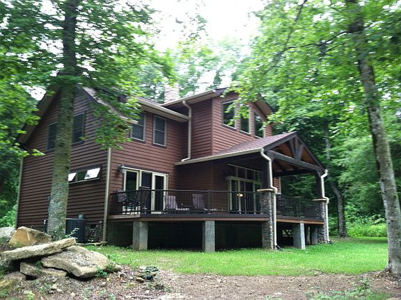 THE RIVER HOUSE Park like setting on Wolf River with custom built one owner quality built home. Step inside the large foyer and one is immediately drawn to the view of the river flowing quietly just steps from the covered porch. Large open concept living space in great room with floor to vaulted ceiling stone wood burning fireplace. Pella windows and doors, dark hardwood hand scraped flooring, maple kitchen custom cabinetry with solid surface black counters and all appliances. Kichen with eating bar and huge dining table space that opens onto deck. Master bedroom on main level with doors that open onto deck overlooking river with walk in closet and tiled large shower. Stairway with iron railings leads to 2 bedrooms, full bath, large laundry room with sink, and open den area for watching tv. Detached garage is oversized at approx. 35x35 with two 8'hx10'w doors, covered porch with service door and attached workshop area with sink.