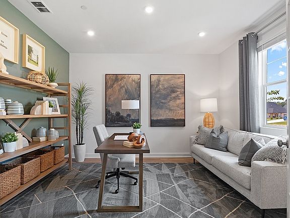 This Calderwood at The Oaks in Mount Juliet combines open living with practical spaces. The main-floor owner’s suite includes a spa bath and walk-in closet. The great room and dining area flow into an extended kitchen with light gray cabinets, perfect for hosting. Upstairs, three bedrooms, a full bath, and a loft with large storage closet create room for hobbies, a study space, or a reading nook. A covered patio and 3-car garage complete the home, offering space for outdoor enjoyment and organized storage.