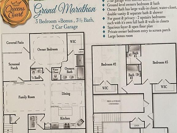 Large 3 bedroom 3.5 bath townhome with 2 car garage. Grand Marathon floor plan. Construction has just started, expected completion June 2020. Home features gas heat, gas cooking and tankless gas hot water heater. An open kitchen plan with separate dining. Large screen porch. Amenities center includes shallow shelf entry pool, clubhouse with kitchen, entertainment area, fireplace, outdoor lanai with grill area. Custom built with sound reduction construction, maintenance free exteriors and low monthly HOA fees. Picture is of floor plan. Price includes wood flooring or LVP in the living room, dining room and kitchen with carpet in the bedrooms, bonus room and stairs.