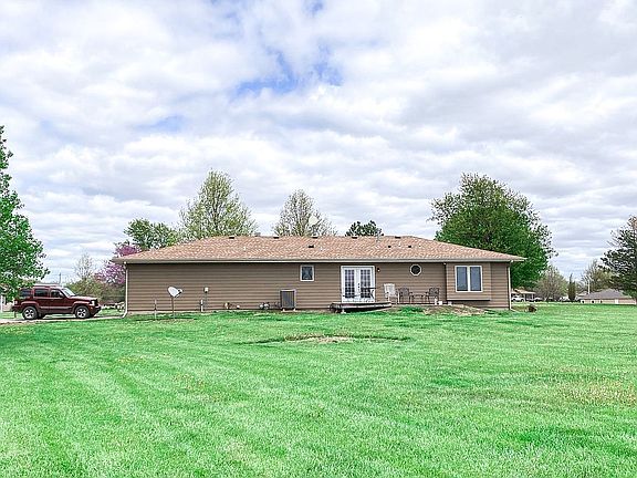 Nestled in a quiet neighborhood on the edge of town, this single story ranch style home is situated on a large, 5 acre lot loaded with walnut and pecan trees and an abundance of wildlife. This home features spacious bedrooms, large bathrooms, and a closet in the master suite that is a shoe lover’s dream. A full, unfinished basement is awaiting your ideas and one egress window allows an opportunity for a third bedroom. The basement also features a cedar room for addition storage, and a tornado shelter room with a locking door. The master bedroom offers beautiful coffered ceilings, newly painted walls, and a sizeable picture window with a window seat that looks into the enormous back yard. New carpet has been purchased for the master bedroom and will be installed before closing. Enjoy the impressive walk in closet in the master en-suite with ample room for clothes and storage. The en-suite bathroom is modernized by an upgraded toilet, new hardware, and an updated light fixture. New tile and a vanity top will also be installed by closing. The second bedroom is spacious with a picture window with a window seat that would make the perfect reading nook. The kitchen boasts a magnificent center island with an extra sink and a great deal of of cabinets throughout. In the kitchen, you will also find a large walk in pantry with plenty of shelving and a small nook for extra storage. The living/dining rooms include fresh paint with upgraded LVP flooring and a new French door to the patio to compliment the oak trim throughout. A wood burning fireplace and beautiful picture windows complete the living area, giving it a cozy feel. Laundry room comes complete with a sink and access to the garage. Much of this home has been upgraded already, with a few spaces awaiting further modifications. The best of both worlds. A home you can move into, with opportunity to add value while making it your own. Please contact Joseph at 785-304-1482 with any questions or inquiries regarding this home.