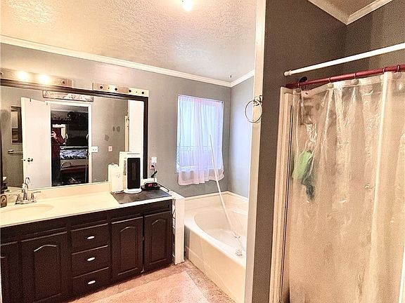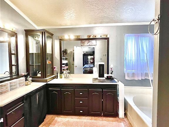 This home is a beauty! Tons of custom rock work on the exterior, along with a 2-car detached garage. Enter into a large living room with the kitchen connected. Kitchen has white cabinets with tile back splash, lots of room to cook those family style meals! Master bedroom is spacious conjoined with an attached bathroom with a large soaking tub. The home has 2 other bedrooms for kids, guests or an office space. This home also features a large craft/hobby room! Guest bath has been updated. Newer carpeting, new exterior paint, newer roof and the PVC piping has been replaced with all copper. 2 window coolers and a large swim spa are included with the sale! Bring your pups! Plenty of room to run around this wonderful home. Home to be sold AS-IS.