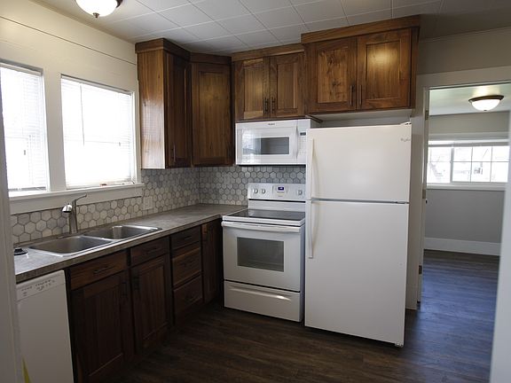 Updated and Remodeled 2 bed 1 bath with unfinished basement in the university area with a large fenced lot. Updated plumbing and electrical. New kitchen cabinets, counter tops and appliances. Washer and dryer included with home. Updated bathroom. New carpet and LVT flooring. Updated trim, doors, vinyl windows and new paint. New maintenance free vinyl siding. Large cover front porch. Detached single car garage. Gas furnace and electric water heater. New insulation in attic. This home has tons of options. It would make a great starter home or investment property. The large lot is zoned Residential Commercial Professional would either be perfect for a shop or an additional dwelling.