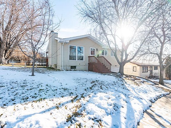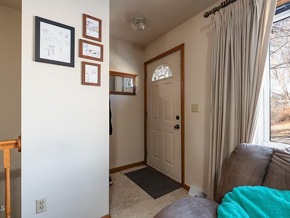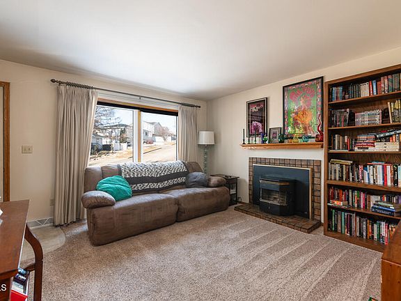 Step inside the front door, and you will feel welcomed into this cozy and bright 3 bedroom, 2 bathroom home. The living room offers a pellet fireplace and is open to the dining room with a Pella French patio door opening to two-tiered deck with access from the primary suite as well. The kitchen features undercabinet lighting tile backsplash and some Leingang newer windows. The main floor features 3 bedrooms and a full bath with tiled shower surround. The basement has a second living room area laundry room, storage, 1/2 bath and access to the two-car tandem garage. The yard has sprinklers, shed, and mature trees.
