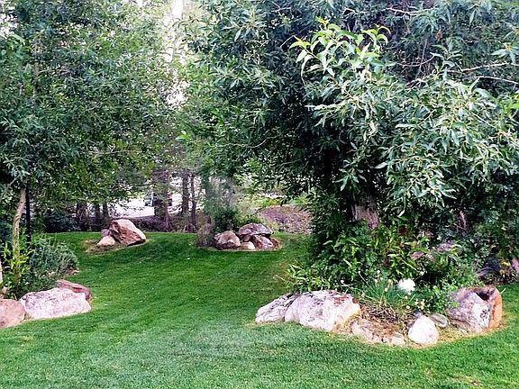 Open light floor plan with lots of windows. Woven wood blinds throughout the home. 3 tone paint with great trim work. Rock fireplace and archway in family room. Wood floors and travertine tile throughout home. Large solid core doors in home. Custom designed front door with seeded glass. Large open kitchen with alder cabinets and kitchen pantry. Sound system throughout home and outside. 2nd family room upstairs. Laundry room upstairs with bedrooms. Master bedroom with walk in closet. Master bath includes a garden tub and large walk in shower. Brand new a/c unit. Water softener. Park like setting in the backyard with mature trees. This home backs the American Fork River. Fire pit area with benches. Wonderful area by park and walking trail that connects to the new Murdock Canal trail. This is a great family home!