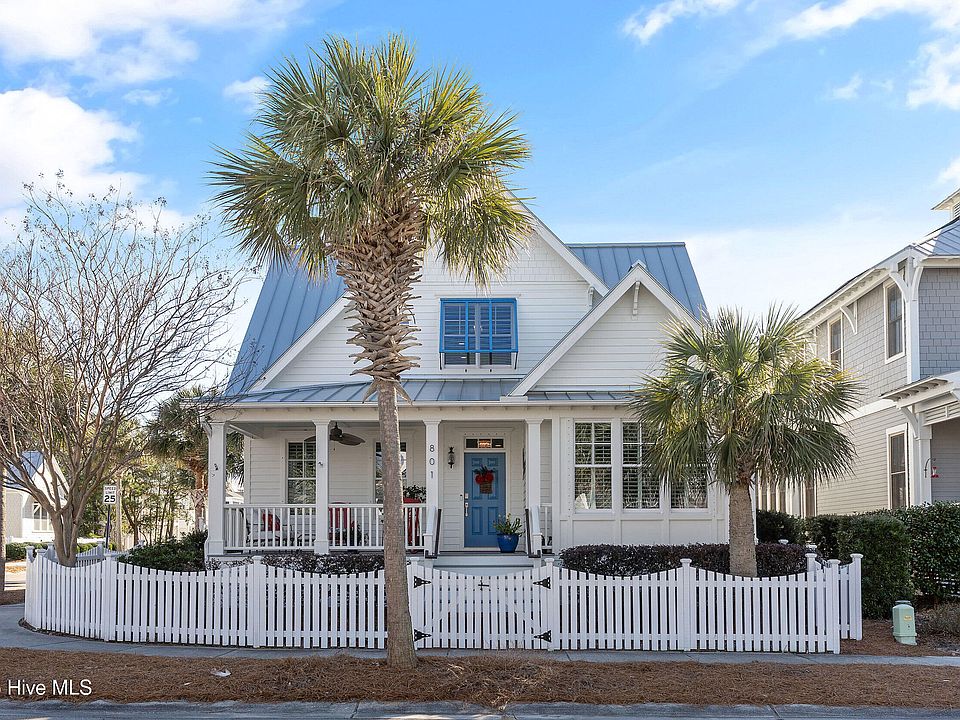 Situated on a corner lot in the desirable Seagrove community, this custom-built, meticulously maintained home is a true masterpiece. Designed and personally owned by renowned builder Richard Wallace, this residence showcases timeless craftsmanship, luxurious upgrades, and thoughtfully designed spaces. The authentic Charleston-style front porch is framed by heavy plank James Hardie Artisan fiber cement siding, exposed rafter tails, and extensive exterior trim. Inside, you'll find wide-plank hardwood flooring, 9-ft ceilings, and an open layout filled with natural light. Completely updated, the kitchen is stunning and functional, including an oversized island with quartz countertops, a 36'' gas range/convection oven, two dishwashers and microwave/convection oven. The spacious owner's suite features an extra-large walk-in closet and a spa-like ensuite bath with quartz countertops, a soaking tub, and a luxurious spa shower. Upstairs, two large bedrooms have their own walk-in closets. This home includes a home office with built-in cabinetry and a queen-size Murphy bed. The large second-floor loft features built-in storage, surround sound, and a second queen-size Murphy bed. A climate-controlled walk-in storage room on the second floor adds functionality. Outside the upstairs living area, an expansive open deck leads to the one-of-a-kind secret rooftop garden. The home boasts a private outdoor patio, and propane grilling station. The fence and landscape lighting enhance the outdoor ambiance, while the enclosed outdoor shower is perfect after a beach day. Parking includes an attached garage for secure vehicle storage, plus four additional spaces. The community is just a short stroll, bike ride, or golf cart ride to the beach, and offers a pool and clubhouse, providing a resort-style experience just steps from your door. This property does not require flood insurance, giving you peace of mind while you enjoy coastal living. Full list of features/ updates available.