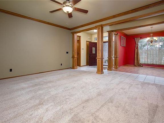 Mature trees & landscaped lawns line sidewalks of this beautiful community. The Landscaped Front Yard flows to the serene Backyard Retreat which can be enjoyed & seen from the inside "walls of windows." The Entry opens to a Wood Floor Formal Dining / large Carpeted Living Space (both w/Crown Moulding) & flows to a Family Room w/Wood Floors, Fireplace w/Built-in, Vaulted Ceilings & Doors leading to 1 of 2 Back Patios (extended Patio + Retaining Walls). Off the Family Rm is an Open/Bright Kitchen + Eating Space w/Tile Floors, Updated stainless Steel Appliances, Center Island, Upgraded Back Splash, & Windows w/Views! An Elegant 1st Floor Master Suite w/back patio access has Trey Ceilings, Dual Vanity, separate Walk-In Shower, Soaking Tub, Toilet Rm & Large Walk-In Closet w/shelving. Laundry Rm has cabinets/counter space. Amenities: Replaced Air Conditioner / Heating Units, Hot Water Heaters, Carpet & all Flooring. Home has 2 Walk-In Attics (400sq ft of storage), Garage Storm Shelter