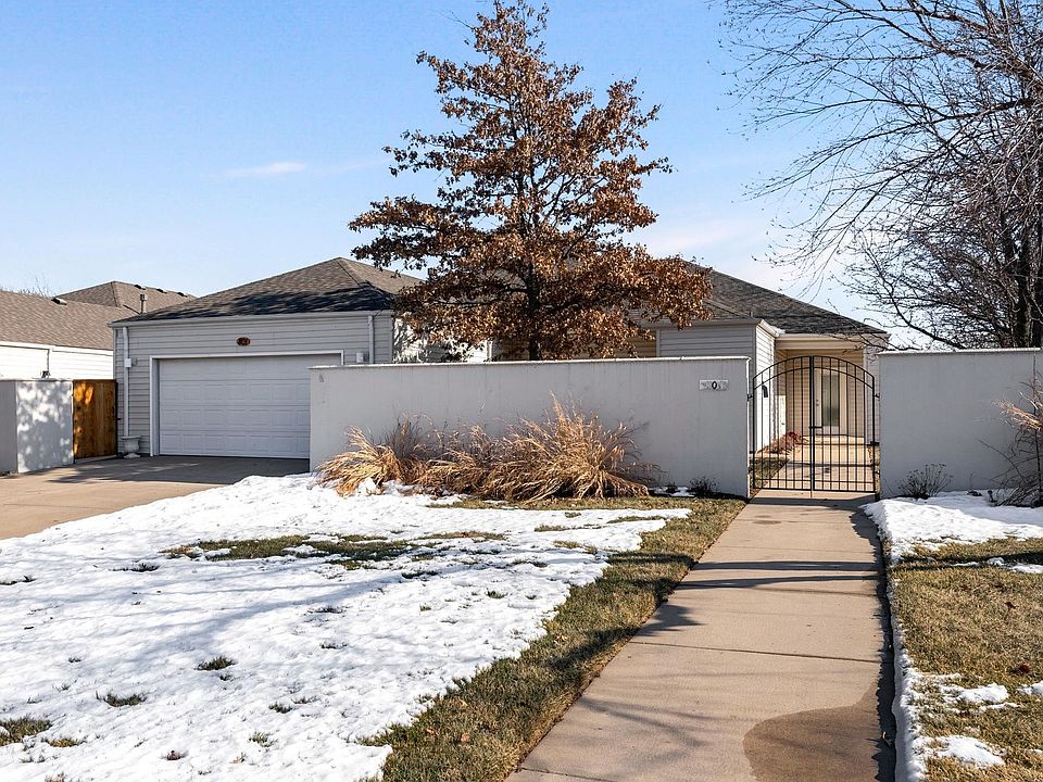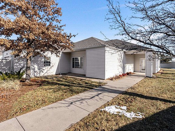 The perfect patio home with zero entry, open floor plan, well-appointed kitchen, storage and a large fenced backyard. Welcome to 801 N Glenmoor in Crestview Country Club Court. From the private courtyard, the tiled entry leads you inside to a large, open kitchen/dining/living room area with high ceiings making for a very spacious feel. Kitchen is large enough to accommodate a small dining table or an island if you choose. It has tiled floor, granite countertops, pull-up corner bar seating, plenty of prep space and all appliances convey. Formal dining space is adjacent to doors leading out to the covered pergola (built in 2019), just dreamy for morning coffee and alfresco dining. Living room has a cast stone fireplace to take the chill off for cozy evenings at home. The large primary bedroom suite has double closets, a whirlpool tub, walk-in shower and linen closet. The second bedroom suite also has a full bath, large walk-in closet and an additional separate entrance to a private patio. Rounding out the home are a handy half bath, a workroom with shelving, and the utility room/storm shelter. Home has been well-maintained with new HVAC in 2019, new hot water tank in 2021, new Class 3 roof in 2019 and concrete leveling in the past year. The roof and concrete work have transferable warranties. Great community with HOA taking care of this .41 acre fenced yard. Snow removal is also offered by the HOA. Close proximity to highway access and near all city amenities. A golfer? Check out Crestview Country Club across the street.