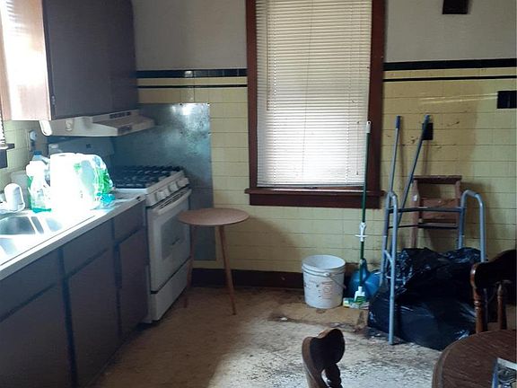 Hey Rehabbers, Older Bungalow in Need of Remodeling, 2 Bedrooms, One on Main Level, Second one Upstairs, Kitchen and Bath Need Extensive Updating, Dining room and Living room, Alot of Old Wood Moldings, Newer Siding and Some Newer Windows, Updated HVAC and Gas Water Heater, Partial Basement with Sump Pump, Roof appears to be less than 10 years old, Large Fenced in Back Yard, Gravel Off Street Parking, Corner Lot, Property is in an Estate, Selling AS IS, Sellers will do no repairs or inspections. All Furniture and belongings Go with the House, Priced for Quick Sale.