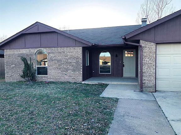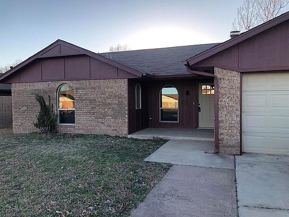 This all-electric home features an abundance of cabinets in the kitchen and a dining room with a beautiful window seat. The living room showcases a cathedral ceiling with wood beams and a brick wood-burning fireplace, elegantly accented by built-in bookshelves on either side. Several rooms are equipped with ceiling fans, and there are storage cabinets in the hallway, along with a grand entry that includes a coat closet and inside utility space. Additionally, the home features an attached two-car garage, a covered patio, and a spacious backyard. This delightful, move-in-ready home is located in the Moore School District and is conveniently close to shopping, restaurants, and easy access to I-240 and I-35.