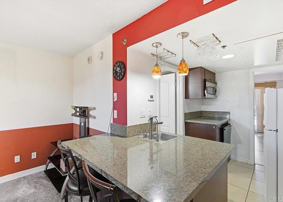 SHORT SALE — a bright, inviting 1-bedroom condo in the heart of National City. Perched on the 4th floor with elevator access, this charming unit offers a cozy open layout, modern lighting, and granite countertops in both the kitchen and bath. Natural light pours into the spacious bedroom, which opens to a private balcony with beautiful urban views. You’ll love the ease of having a covered parking spot in the building, plus access to community laundry facilities just steps away. Whether you’re looking to invest, downsize, or purchase your first home, this unit offers incredible value with a little TLC. Located minutes from shopping, dining, freeways, and schools, everything you need is right at your doorstep. Enjoy the energy of city living with the comfort of a quiet community.