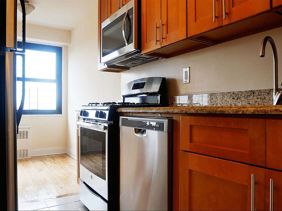 A beautiful studio apartment located in the Bronx. This unit features stainless steel kitchen appliances, built-in microwave, dishwasher, and hardwood floors. Contact us today for more information and details.