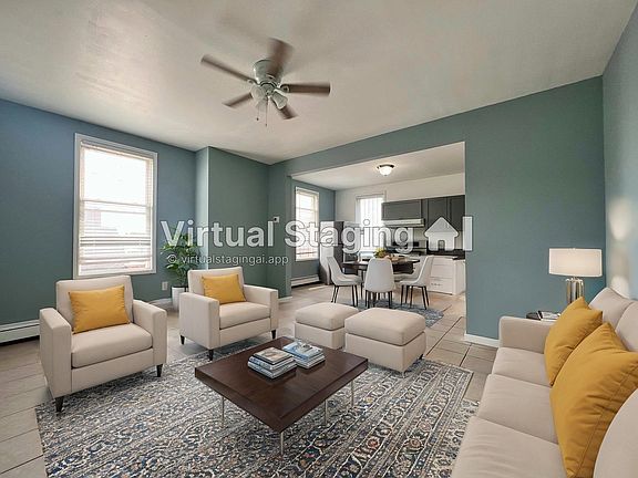 Very spacious approx. 830 sq f 1 bdr+den, 1 full bath with peekaboo views of NYC skylines Open concept living and dining room is perfect for entertaining. Gourmet modern kitchen is a chef's dream, featuring SS appliances, granite countertops and ample cabinet space. Den has a window and can be used as an office or walk in closet. Enjoy your own Washer and Dryer in the unit. Heat, water and sewer included in rent. Plenty of street parking, pet friendly. This prime location is situated in a vibrant neighborhood, walk to shops, restaurants, beautiful town pool and parks. Steps form NYC bus makes this location unbeatable. Pets are welcome