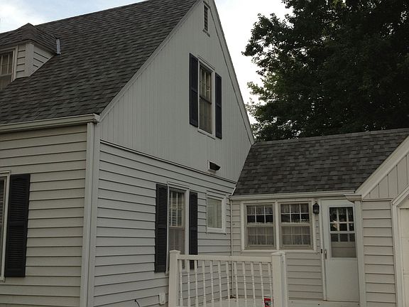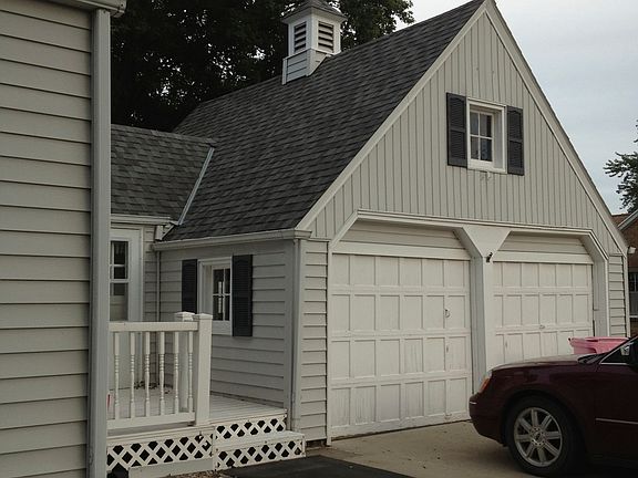 Charming older home on a large corner lot. The main floor has a large living room with an electric fire place along with a good sized dining room. Both rooms have brand new carpet installed in May 2015. Also on the main floor is a bathroom and a long kitchen with a breakfast nook (big enough to fit a dining room table). This home has 2 bedrooms upstairs and a newly remodeled bathroom in 2015. The basement is finished with a family room, bathroom, and laundry area. It also has a walk-out door that leads right into the large backyard. Many of the rooms in the house have been repainted within the last year. The 2-car garage is attached and there is another single car garage in the backyard.
