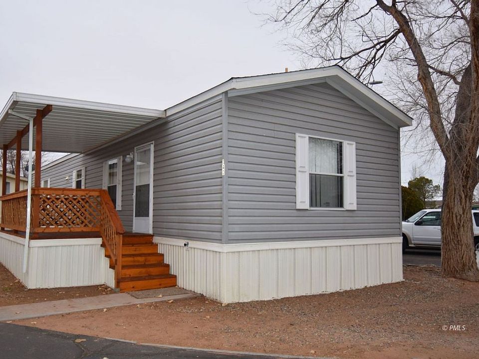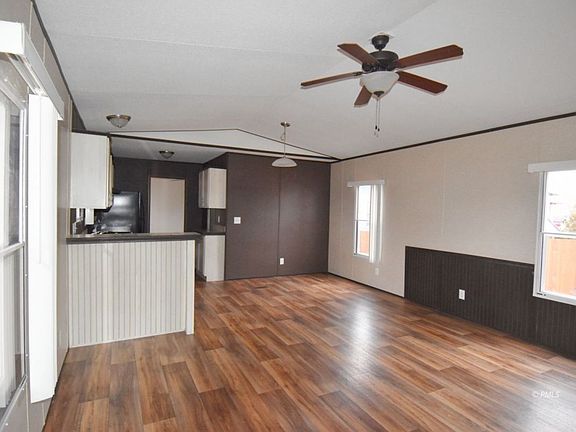 This 2 bedroom, 2 bath home with a split floor plan at Chapman's Mobile Home Park couldn't be in a more convenient location, right at the entrance! This spacious design offers a beautiful, modern kitchen with dedicated space for your dining table. The stunning ivory cabinets and beautiful marble-inspired countertops with classic black appliances will have you ready to call this home your very own. Enjoy dedicated parking right next door. This home has all the perks, including upgraded central air instead of an evaporative cooler. This one simply won't last! We have other homes, both new and remodels, available. Space rent is $503.67 per month, including tax. You can stop renting and start owning. Call today!
