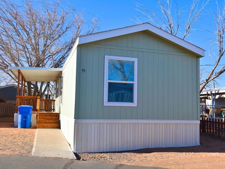 This cute little 2 bedroom, 2 bath 2019 Clayton home at Chapman Mobile Home Park is move-in ready! At barely a year old, it is basically brand new. Featuring a split floor plan with a modern kitchen, you'll love the open concept feel of this home! It feels so much larger than its 765 square feet. Enjoy low-maintenance linoleum throughout this all-electric home on a quiet street. We have other homes, both new and remodels, available. Space rent is $503.67 per month (including a 3% sales tax). Seller financing is available for 10% down plus 3% sales tax for a term of 10-12 years. What's keeping you from home ownership? Call me today for a walkthrough and more details!