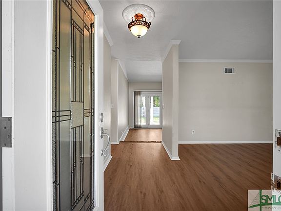 CHARMING 4 BEDROOM FULL BRICK HOME nestled in one of Savannah's most desired older established neighborhoods. This corner lot property boasts privacy with a fenced backyard, workshop, a covered patio and stunning Palm Trees! The inviting in-ground pool is perfect for relaxing or entertaining. Step inside the home through the entry foyer, where you'll find a spacious living room/dining room combo. The sunken family room offers a cozy atmosphere with a corner fireplace. The fully equipped kitchen includes ample cabinetry and a large breakfast nook. Convenience meets functionality with a separate laundry room and double garage. Recent upgrades include new luxury vinyl plank flooring, water heater and privacy fence adding value and peace of mind.