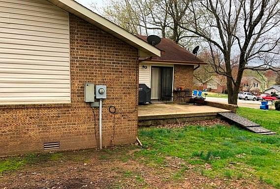 Corner lot house with attached garage; large trees in level yard; concrete patio out the back for enjoying the outdoors; house has new siding, gutters, windows, and downspout