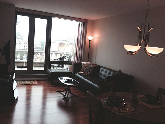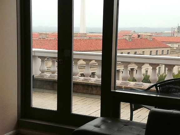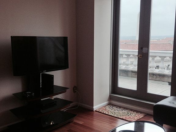 Breathtaking views of the Washington monument, new Trump Tower Hotel and the vista of downtown DC can be yours in this amazing penthouse condo! Enjoy high-end finishes in this tastefully decorated, FULLY FURNISHED Penn Quarter home. This hip and happening neighborhood is home to many museums, shopping, bars, theaters, restaurants, and art galleries. Watch the Washington Capitals get a hat trick, the Wizards get a slam dunk or simply go shopping any of the new shops in City Center! It is a stone's throw from Archives Metro (yellow/green), and less than 10 minute walk to Judiciary Square (red) and Federal Triangle (blue, silver, orange) Metro stations. Four blocks from Gallery-Place Chinatown, Newseum, Smithsonian museums and several other historical sites! Grocery stores, like Safeway and Giant, are a 15-minute walk and even Walmart is just a 20-minute walk. The Residences at Market Square West is an upscale development with a 24 hour front desk concierge and garage parking available for additional fee. The heated rooftop deck is open in the warmer months as well. Not only are ALL UTILITIES INCLUDED in rent, but includes two TVs with cable including HBO and Showtime, high-speed internet, trash and a stackable W&D in unit. Non-smoking unit, even on the balcony. All you need to bring is your clothing/wardrobe! To make your appointment, contact: Ongisa Mckenzie Real Estate Agent DC Apartment Company 202.600.9500 ext.195 office 240.334.7444 mobile ongisam@dcapartmentco.com Non-smoking, No pets, $200 move-in fee. All utilities included Optional garage parking and additional $250/month