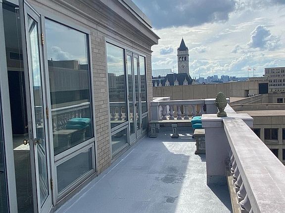 First showing begins on Monday, April 17, 2023: Market Square on Pennsylvania Ave NW: It's living Large in a penthouse corner unit on Pennsylvania Ave: Enjoy dual balconies to take in the beautiful cityscapes of Washington DC, including the beautiful views of the Washington Monument and old Post Office clock tower (Waldorf Astoria Hotel). This is a one bedroom plus corner den with access to two balconies, a great office space for working from home. Lot of closet space and a modern kitchen. All rooms have walls of glass from floor to ceiling with four sets of French doors leading to the balconies facing north and west. Sunsets, fireworks and views of Pennsylvania Ave. Includes water, sewer and extra storage on the10th floor. Enjoy the furnished roof deck and heated pool, cook out stations, and a 360 view of Washington DC from the US Capitol to Arlington.