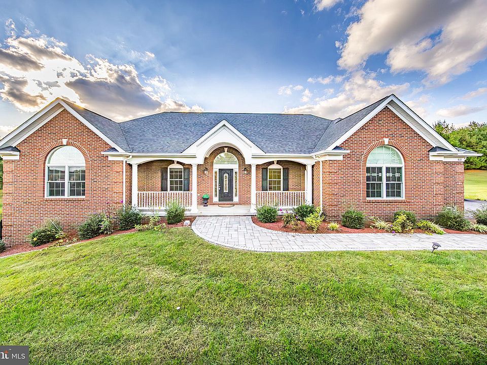 Nestled in the charming and historic town of Sykesville, MD, this stunning four-bedroom, two-bath brick home combines the luxury of ONE-LEVEL LIVING with spacious rooms, soaring ceilings & HARDWOODS throughout! The open-concept, eat-in kitchen features a breakfast bar, stainless steel appliances, gleaming granite countertops, tile backsplash, recessed lighting, and flows seamlessly into the great room, where a warm fireplace creates the ideal living/entertaining opportunity! The primary suite is a true retreat with a large walk-in closet and a spa-like attached bathroom featuring a deep soaking tub, walk-in tile shower, granite-topped dual vanities, and loads of space in which to indulge in privacy. The second bedroom is massive and has cathedral ceilings and is adjacent to a full bath with a tub/shower combo and large granite-topped vanity. Glass french doors lead to an office, which can be counted as the fourth bedroom . A conveniently located dedicated laundry room with mud sink and shelving is off the garage (washer/dryer do not convey). The home’s massive walkout basement offers endless potential—whether for extra living space, a home gym, or the ultimate entertainment area. Step outside to the welcoming, expansive patio made of pavers is framed by stone accent walls, adding texture and style & enjoy views of lush, mature trees—your own private escape. The fully fenced back yard is framed by a handsome black metal fence with gates to enter from the 2-car, side-load garage. Located in the picturesque town of Sykesville, this home is part of a vibrant community known for its small-town charm, historic Main Street, and scenic landscapes. Enjoy being just minutes away from boutique shops, restaurants, and local events while still having easy commutes to nearby cities-- DC being only 40 minutes away! An attached two-car garage adds convenience, ensuring plenty of storage and ease for your everyday lifestyle. Don’t miss this rare opportunity—it’s not just a home, it’s a lifestyle in one of Maryland’s most beloved towns!