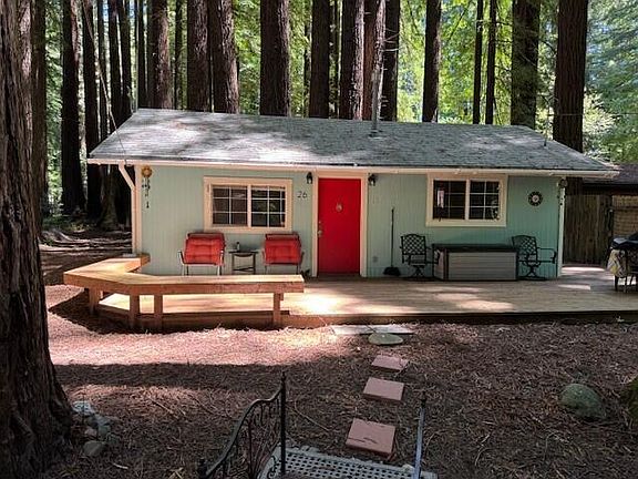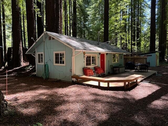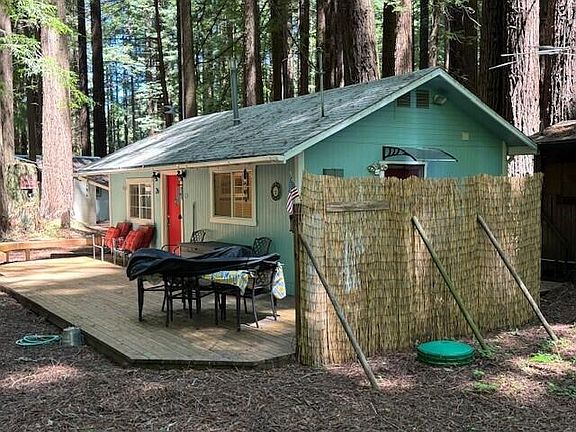 Redwoods and River, yes please! Vacation in this cabin at Riverside Acres for 153 days per year. This 1 bedroom, 1 bath, 487 sq ft home is ideal if you want to get away from the hustle and bustle of it all. Super cozy and well maintained. Great deck and firepit for entertaining. This property also boasts a nice shed for all of your water toys! The land is common area and each owner owns 1/40th share of the 27 acres that comprises Riverside Acres, making the land shared ownership but the dwelling privately owned. Listing Broker and agents DO NOT guarantee the information in this MLS Listing is accurate. It is the duty of any person, buyer or entity using this MLS listing to exercise due diligence to independently verify this information.