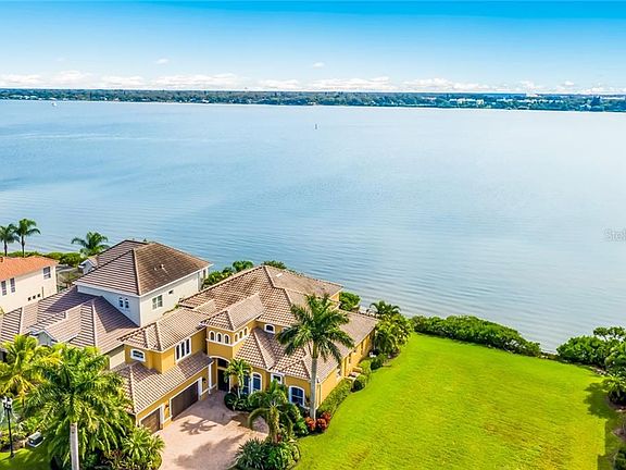 EXCLUSIVITY ON THE MANATEE RIVER, ON THE ISLAND, AT RIVIERA DUNES. Located behind the gates you will find this beautiful custom 2 story home with 3,900 square feet of luxurious living area. Step into the courtyard foyer where you will find a private casita with its own entrance for your guests. Then move through the custom double door entry into the grand salon with gas fireplace, open to the gourmet chef's kitchen with natural gas cooking, dining room and through to the lower level lanai accessible by disappearing glass walls leading to the infinity-edge pool and spa. The private master suite and spacious bath, an additional bedroom and full bath, plus a den are also on this level. The soaring ceilings in the great room give an open and airy feeling to the home. The second level offers a family room with full wet bar, wine refrigerator and ice maker as well as a bonus room that could be a theatre/game room. The second-floor lanai offers a fireplace as well as a spacious seating area with views of the Manatee River and incredible sunsets. The three car, oversized side load garage offers plenty of storage. Walk to your private, deeded boat dock which will accommodate up to a forty-five-foot boat. Located in one of the finest waterfront communities on the west coast of Florida, with easy access to the ICW and the Gulf of Mexico. The amenities at Riviera Dunes include a separate clubhouse with heated year-round pool, tennis court, fitness center.