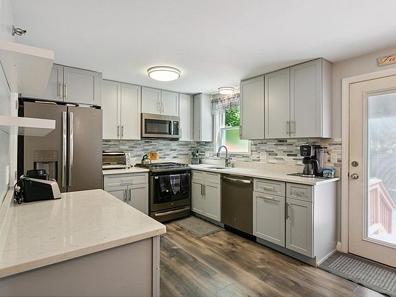 Ready for its next owner! Welcome to this spacious townhome where many updates have been done for you while leaving some room for your own personal touches. Featuring a fully renovated kitchen with stainless appliances, quartz counters, gas cooking & todays colors, you will be happy to entertain here or simply enjoy a quiet moment. Your kitchen not only offers ample storage with closet space but a coffee bar on the secondary wall as well. A half bath boasting the same upgrades is conveniently located off the kitchen for you & your guests. French doors on your deck not only allow sunlight in but give you direct access from your 2 parking spaces. Upstairs, 2 oversized bedrooms with the primary boasting a vaulted ceiling, a skylight & ample closet space. The lower level of the property is ready for your finishings offering great ceiling height & so many possibilities. Central air, updated water heater, newer appliances & more make this property a great place to call home.