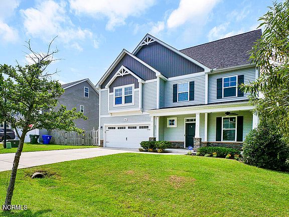 Available Now; Security Deposit Promotion Available; Application Fee Waived. Impeccably maintained and like NEW! This home is located in the beautiful and cozy Arbors subdivision in the city limits of Surf City. With over 3,000 heated square feet, 5 bedrooms AND a bonus room, this home has everything you need. This home has exceptional curb appeal with a covered front porch that is equipped with a ceiling fan! As you enter the home, you are greeted with a beautiful foyer with a formal dining room with coffered ceilings and custom wainscoting to the right. Moving forward through the home, you will find a gourmet kitchen that is sure to please, showcasing gleaming granite countertops, stainless steel appliances, a gas stove, an elegant tile backsplash and a great pantry. The kitchen opens to a large family room complete with a gas fireplace for those cool winter