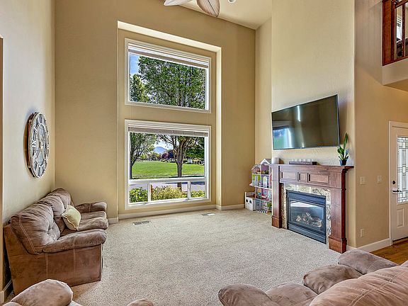 Fantastic 4 bedroom, 2.5 bathroom home located in a great neighborhood! This home features an open floor concept, 2333 sq ft, hardwood floors, nice entryway, large loft area and abundant natural light throughout. Wonderful kitchen has granite counters with eating bar and walk-in pantry. Large living room offers a gas fireplace, high ceilings w/ fan & huge windows. Spacious dining area has a glass door that leads out to the covered patio. Downstairs master suite offers a large walk-in closet, attached master bathroom with double sinks, large separate shower & jetted tub. Upstairs features nice sized bedrooms, large loft and full bathroom with tub/shower combo and linen cabinetry. Large laundry room with utility sink, cabinetry & counter space. Enjoy the lovely yard w/sprinkler system & finished 2 car garage. Most exterior trim w/ new paint. Great Twin Creeks subdivision location near open space, parks & basketball courts. Home warranty included. Move-in ready.