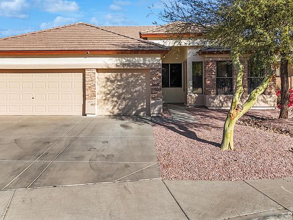 Welcome to this stunning golf course home in the sought-after Coldwater Springs community! This beautiful 4-bedroom, 2-bath home also features a 5th bedroom with double-door entry, currently being used as an office/media room, offering great flexibility for your needs. The spacious and open-concept floor plan boasts soaring vaulted ceilings and beautiful ceramic tile throughout the main living areas. The master suite is a true retreat, featuring a generous walk-in closet and a spa-like bath with double sinks and a separate tub and shower. The front and rear yards are fully landscaped, offering a peaceful oasis with breathtaking views of the golf course. Relax by the sparkling pool, which is fenced for safety, or enjoy a cool evening on the cozy front porch. The side yard is concreted providing extra space for storage or outdoor activities. This home also includes a 3-car garage and is located in a golf course community with a private park, playground, and basketball court. Freshly painted in 2025 outdoors, and seller is offering a 1 year home-warranty! This home is move-in ready and truly a must-see. Conveniently located with easy access to I-10, don't miss the opportunity to own this spectacular property!