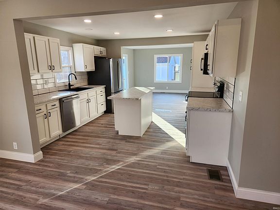Welcome home to this totally remodeled home in Boonville across from Oakdale Elementary! This 3 bed, 2.5 bath home with basement has been remodeled from top to bottom. As you approach, notice the stamped concrete driveway and very nice walk way and covered front porch. Upon entering, you will love open concept living with natural light. The living room is open to the kitchen which extends in to the family room. The kitchen is a chef's dream with tile backsplash, kitchen island, stainless appliances and an abundance of cabinetry. The family room has convenient access to the new deck with sliding patio door. Downstairs there also are two bedrooms and two full bathrooms. The owner's bedroom has an attached bathroom and large closet. Upstairs you will find an additional half bath, play room or office and the 3rd bedroom. Everything is new per owner including roof, windows, gutters, siding, paint, flooring, HVAC, light fixtures, plumbing, doors, cabinets, showers, vanities, toilets and much more. The seller is offering immediate possession and a home warranty for buyer peace of mind.