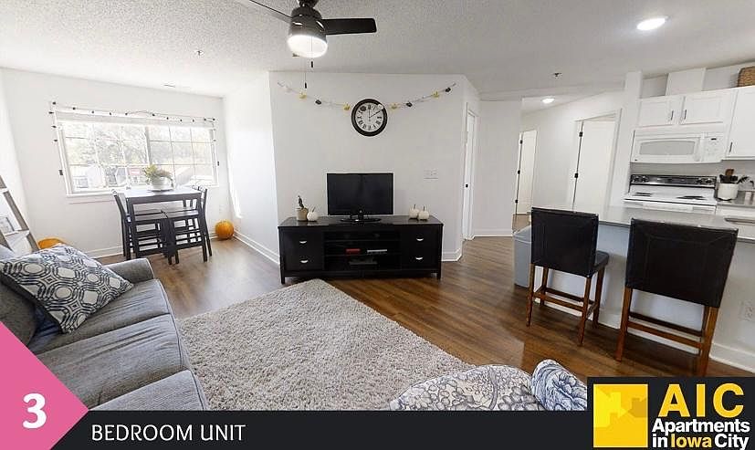 LAST UNIT IN BUILDING AVAILABLE August 2023-2024: 3 Bedroom 2 Bathroom, 801 S Gilbert Street. Rent is $508 per person ($1525 total a month) Wifi is included in rent. Tenants pay water and electricity. 2 free parking spots are included. If interested PLEASE CALL OR VISIT THE WEBSITE "AIC: Apartments in Iowa City" for leasing. Zillow is only used as a form of advertisement. "Two free parking spaces are included with each unit (no additional parking available). Free laundry onsite and free internet. Tenants pay utilities and are responsible for transferring services to their name(s) for the full duration of the lease. All units are unfurnished. Pet friendly for pets up to 40lbs. Refundable pet deposit required of $250 & $25/month pet rent." No live tours available.