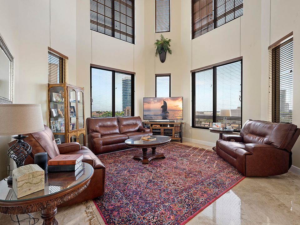 One of a kind spacious 2 story condo with 25 foot ceilings, Entire unit completely freshly painted, All new stainless steel LG appliances July '23, new water heater '23, march '23 new a/c, all marble floors and bathroom shower and countertops just re-polished, 2 inch blinds throughout unit. Amazing architectural design, balcony off dining room w/SE city and partial intracoastal views. Located in the luxurious One City Plaza in downtown WPB! Open Floor plan, complimentary valet parking for guests. 2 parking spaces in covered parking garage w/no elevator access needed. Close to City Place, dining, PBI Airport and more! This luxury building has a 17th fl roof top inground pool with views of the intracoastal and Palm Beach Island, on site manager, fitness center, sauna, steam room, 7th floo R courtyard w/waterfall, trash chute, renovated community room, bike storage and a stunning lobby! Parking for electric cars also available. Located along Florida's Atlantic Ocean coast, West Palm Beach offers visitors year-round excitement within easy reach of smooth-sand beaches and some of the nation's most enticing waterways. Downtown West Palm Beach is home to four retail and entertainment districts Clematis Street, The Square, Northwood Village and Antique Row. These vibrant pieces of West Palm Beach are lined with fashionable bars, nightclubs, boutiques and collectables. The handicap-accessible Downtown Trolley makes getting around the Clematis and Rosemary Square Districts a breeze. It is a convenient way to visit all your favorite Downtown shops, restaurants, and attractions. The Trolley picks up passengers every 10-15 minutes at designated trolley stops located throughout the Downtown.