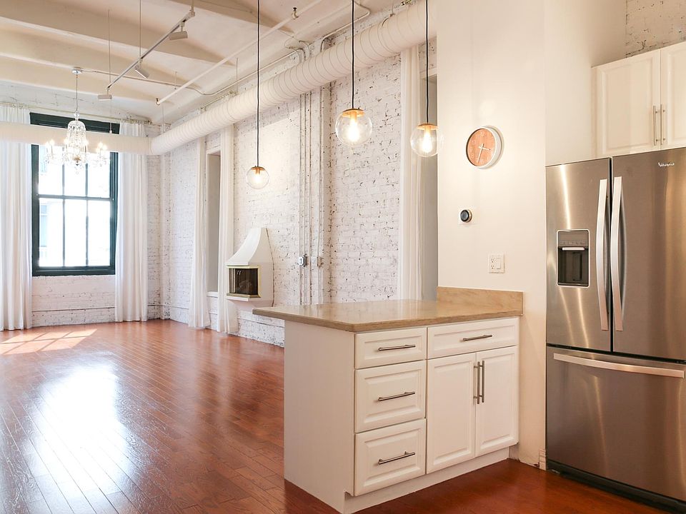 Bright and airy industrial loft located in historic Paper Place Lofts of Printer's Row. This unique 1400 sq/ft 2BD/1BA has 14' ceilings with exposed white brick throughout. Recently updated, it features Scandinavian style hardwoods, modern art-deco spa bathroom, and convenient laundry room with new Samsung washer/dryer. The kitchen space has modern appliances with brand new microwave and dishwasher. The large open living space includes a functional mid-century modern fireplace and stunning antique chandelier. Both bedrooms have walk-in closets with excellent storage and a 10ft window with new modern blinds. Keyless entry and nest thermostat. The building includes an exercise room, spacious lobby, and mail/package area. Enjoy the Southbank riverwalk just across the street or take a short walk to the lake, Grant Park, loop, restaurants and shopping. 5 minute walk to Red or Blue lines. Small dogs/Cats ok, larger dogs on case by case basis. Street parking available. Fees - Application $45, First/last/security required for move-in, $350 pet deposit, $50 annual pet fee, Move in fees: $200 (weekdays) with $250 deposit (in the event of damage to common area, refundable).