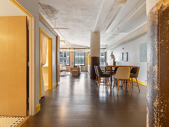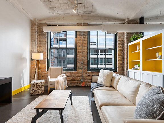 Just plain cool sophistication captures the style of this 1 bedroom, 1 bath loft in Paper Place Lofts of Printer's Row. The remodeled and reconfigured floor plan, have merged to create a spacious, functional home, filled with character. Tall partially exposed terra cotta ceilings heights add visual space to an already large loft. Enter the home to a foyer complete with closet and built-in shoe rack. One is drawn to the East facing windows on the other side of the home. The living area is 28 feet long and includes a seating area for relaxing and watching TV. A wall of storage via custom built-ins divide the living area from the bedroom. At the opposite end of the living area is a custom built in desk and enables one to work from home. The platform bed cleverly incorporates storage in its' design. Both custom bookcase wall of storage and platform bed are floating, and can be moved to another area of the loft. The kitchen includes high gloss gray cabinetry, butcher block countertops and stainless steel appliances. The remodeled bath includes a huge shower, subway tile, hexagon shaped flooring and a new vanity. The adjacent walk-in-closet is ready and waiting to accomodate an abundant wardrobe. Cork floors with cork underlayment are laid throughout the home. A washer & dryer are allowed to be installed. The building includes a coin laundry, exercise room, and bike storage. Walk to the lake, the riverfront, shopping and nightlife. Parking options in the area. Impressive, spacious and fun home to make your own!