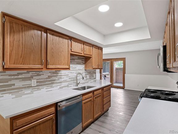 Beautifully updated 3 bedroom, 2 bathroom ground level end unit condo in Green Mountain Townhomes. No stairs, and main level laundry in unit. This home is truly move in ready, all the hard work has been done for you. Brand new luxury vinyl plank flooring, new carpet, new windows, new appliances and quartz counters in the kitchen, both bathrooms have been remodeled, new doors, updated electrical, and fresh landscaping in your own private courtyard. The oversized two car attached garage has a built in storage unit. The clubhouse is directly across the green space and includes an indoor pool, fitness center with sauna, and community center.