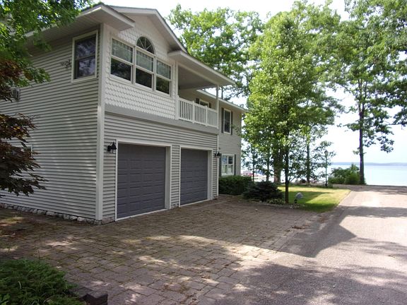 Higgins Lakefront home with 5 large bedrooms, 3 full baths, 2 large living rooms both with fireplaces and a 4 season porch overlooking the lake. This classic 3510 sq ft home was completely updated in 2003. 100 feet of pristine sandy frontage with sunset views. Completely furnished with modern high quality furniture, including dock and boat (2002 Hurricane Fundeck). Two furnaces, central air and two water heaters make this maintenance-free home cozy, efficient and comfortable year round. The home also offers a three-car attached heated garage and a matching shed. Additional features include a security system, heated tile bathroom floors, second floor laundry, two fire pits and a large side yard with artificial putting green.