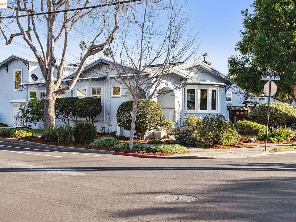 Located on a charming corner in Albany, this 1925, split level Craftsman home offers three bedrooms, an office, two bathrooms, and a perfect blend of original character and modern updates. Lovingly cared for by the current owner for over 50 years, the home features a spacious living room with a bay window, fireplace, and original matchstick hardwood floors. The formal dining room has a period-built hutch, while the bright eat-in kitchen includes ample storage and a sunny breakfast nook. A renovated full bath with heated floors and a deep soaking tub sits on the main level, along with a bedroom opening to a south-facing deck. Up a few stairs you have a serene primary suite as well as another bedroom. The lower level includes a home office and an attached one-car garage. The sunny backyard is an entertainer’s dream with two decks, a grassy area, brick patio, and additional storage unit. On a 5,000 sq ft lot, this home is just one block from Solano Ave shopping and two blocks from Memorial Park, with easy access to BART and Trader Joe’s. Owned Solar system, double paned windows and pride of ownership throughout.