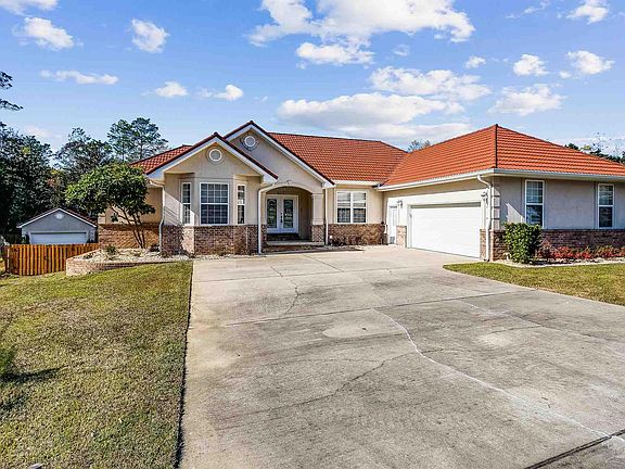 If you’re looking for custom coastal elegance that incorporates practicality for an everyday lifestyle, you don’t want to miss this stunning 4 bedroom 3 bath home located in the highly desired Boulder Creek Subdivision. Boasting over 4200sf and perfectly located on a beautifully landscaped cul-de-sac lot, this spectacular home will check all of your boxes and more. With two floors of custom designed living space, you’re certain to fall in love with this home. The main floor features a spacious living area with tile floors, custom maple built-ins, a gas fireplace and access to a spectacular view of the backyard from the covered deck that runs the full-length of the house. Also located on the main floor is the large eat-in kitchen that boasts a center island, tons of cabinet and counter space, built in maple china cabinet and additional access to the covered deck. And located just off the kitchen you will find a full bath and laundry room with custom cabinets and access to the two-car garage. Additionally, the main floor features a spacious formal dining room, an office with a custom built-in desk and bay windows, as well as a master suite that dreams are made of. The home’s lower level offers a another full living space that includes an open living room, full kitchen and bath, 3 spacious bedrooms, an office, laundry room and access to a screened porch that runs the length of the house. There’s even a concrete hurricane room! And if what’s inside the house isn’t enough, you have to check out the additional 20x24 workshop that includes stainless steel cabinets and plenty of space for any hobbyist to stay busy. If relaxing is more your style, get comfortable under the backyard pergola and enjoy the lush landscaping and style of you own private oasis. This home truly has it all! Schedule your private tour today!
