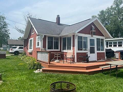 Views of Houghton Lake come along with this lil cutie. Darling cabin with public road end access. No dock but the marina is just steps away for securing a boat slip. Small yard is perfect for low maintenance, gravel drive and new shed included. Wood flooring in the living area, gas forced air furnace, little porch area to kick back and relax. Furnishings can stay.