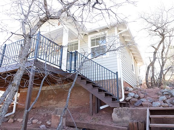 Beautiful home on the hill top of Manitou Springs, with a wrap around deck giving to the amazing views. This newly renovated home has all the basic amenities including dishwasher, air conditioning and in home Washer and Dryer. There is also a fenced yard that is great for entertaining guests or enjoying the quiet outdoors. - In the kitchen there is a in cabinet full size fridge and freezer, all in one washer and dryer, gas stove and oven, and plenty of cabinet space. What is pictured in the home is staged, and what you'll see is a queen bed with drawer space underneath, a full closet and mirror. A sectional couch that can be converted to a twin bed. A dining table set that seats 4 and some bar stools for seating on the isalnd. There is also outdoor seating and a fire pit to enjoy the outdoors. The home has many extras like electric blinds that can be controlled using a smart hub, social trails branching off the property and is nestled in the hill providing privacy. - 1 Assigned street Parking spot with additional spots for guests - Pet friendly with $200 pet deposit and $25 pet rent. - Tenant puts gas and electric under their name - This home is walking distance to downtown Manitou Springs, minutes away from the Incline and many hiking trails nearby. 1 year lease with $100 a month for water, waste water and trash. Pets are permitted upon approval, no smoking in the home. Free street parking.