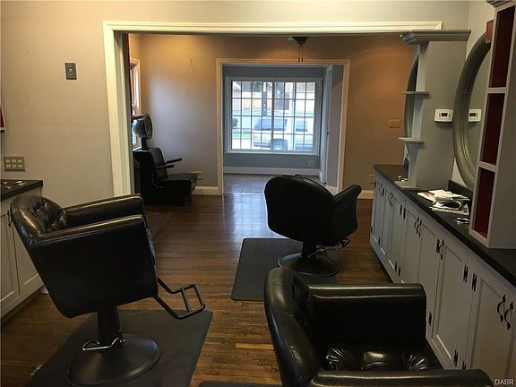 Zoned Residential or Business, could easily be made into multi-family, this house offers both. Wheelchair ramp for access to the 1st flr. which offers remolded salon with 4 work stations with sinks, mirrors, cabinets, ergonomically designed adjustable cutting chairs, and cushioned floor mats. plus 2 more sinks/ work station for washing/rinsing, long with 3 hair drying stations and a room for pedicures and manicures and a half bath. Could easily be modified to have a one or two bedroom apartment on first floor. Second floor offers a 1 bedroom apartment, with eat in kitchen with updated cabinets, sinks and countertops, full bath, bedroom, living room with hardwood floors. Basement is the utility room with a washer and dryer. Outside there is a paved parking lot for off street parking and a large 2 car garage.