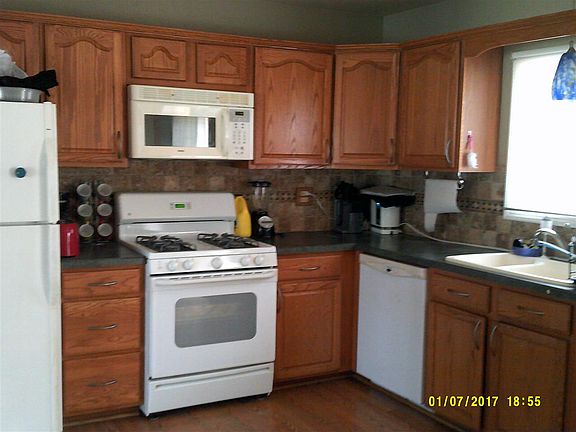Charming Tri-Level!! On corner lot with fenced yard close to I-90! Laminate wood on main level with vaulted ceilings in the living room. Kitchen has custom tile backsplash. 4th bed has beautiful French doors and beautiful oak built in cabinets! Small wet bar in basement with wine fridge! Oak doors an trim through out. Half bath in basement is brand new with ceramic tiles! This house is a must see!