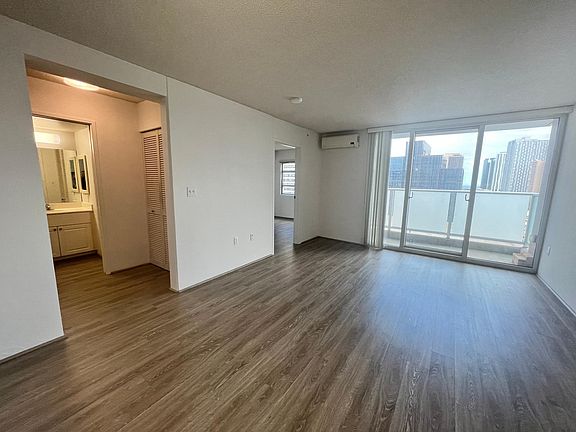 One bedroom unit, 517 square feet with 43 sq. ft. lanai Open kitchen extends out to the living room and covered lanai. Enjoy cool breezes and nice views. It's quiet with double pane windows. Easy to maintain vinyl planks throughout. Appliances: Range/oven, refrigerator, washer/dryer, heater. Cool split AC in living room and bedroom. Parking: One covered unassigned parking stall with lots of guest parking and electric vehicle charging stations. Convenient pick up/drop off area. Amenities: meeting/recreation room, bike and surfboard storage. Security: Water sprinklers and fire alarm system in unit and building. Secure building with 24-hour security, security cameras, and resident manager. Location: Close to Honolulu Hale, City Municipal building, Queen's Medical Center, Straub, Downtown Honolulu, Kakaako and Ala Moana. One year lease, $2,100/month. Rent includes water and sewer. Electric and internet are tenant expenses. Security deposit $2100. No smoking. No pets. No Section 8. Renters insurance required.