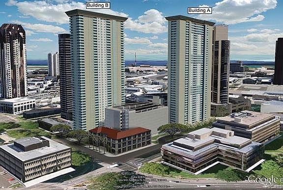 High FLOOR #3806 2 Bedrooms, 1Bath, 2 COVERED garage Parking (extra stall value $41k) 5 elevators 14 units per floor. Great Ocean and mountain views off lanai. 24 hour security, secured entry, resident manager, storage for surfboards ,bike racks, ev charging system, car wash, pets 1 dog under 20 pound's or 1 cat. Location close to Downtown and restaurants. Low maintenance fee only $ 337 which includes cable, internet, water and sewer. Great views off lanai. 3 split A/C Units. Washer /Dryer and water Heater in the unit.