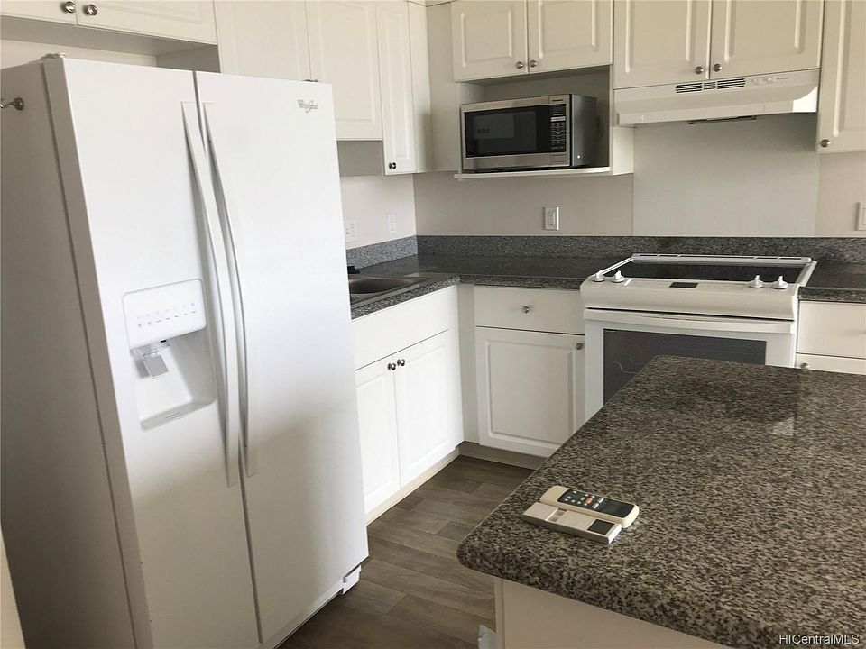 500 credit towards first month's rent with a 12 month lease Upgraded 44th floor one bedroom that can fit a king sized bed, with custom kitchen island, motorized window shades in living and bedroom, closet system, and more! Immaculate 1-bed, 1 -bath with 1-unassigned parking. 1-Additional parking stall available for $100. Split AC system, stacked washer/dryer. Utilities: Water + Sewer. Near Kaka'ako, Downtown Honolulu, Queens Medical Center & Ward Centers.