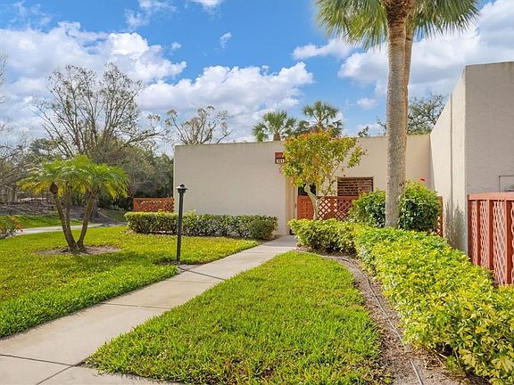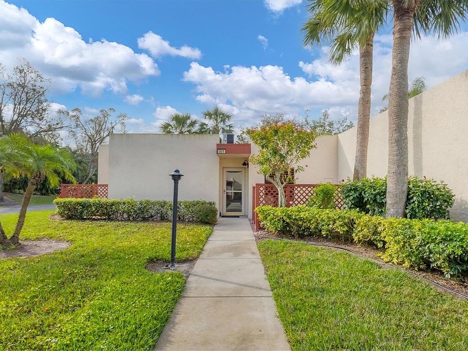 The Florida lifestyle so many are looking for is found in this secluded and charming Mediterranean style enclave of homes in sought after Spring Lakes. This 2 bedroom 2 bath villa is an end unit, so loads of natural light pour in every room. The glass enclosed Florida room is an additional 150+ square feet of living space with expansive tropical and private views! This immaculate home boasts updates throughout.. Luxury vinyl plank flooring, kitchen enjoys solid wood cabinets, granite counters, tiled backsplash, eat-in dinette, that overlooks the brick front patio, and a pass through to the separate dining room that opens to the spacious, open Living areas. Primary bedroom is roomy and has a desirable walk in closet. The ensuite bath is luxurious and spa-like with an updated, tiled walk in shower, raised granite vanity, new fixtures and a lighted mirror. The 2nd bedroom also enjoys an ensuite bath access that includes an updated raised granite vanity and tiled walk in shower, with abundant amounts of closet space. Villa has 1 deeded and covered carport space, and plenty of open guest parking. Spring Lakes resort-style amenities include 2 heated pools, a spa, tennis/pickleball courts, planned activities and parklike walking/biking trails to enjoy this tranquil community and its peaceful nature. This location is prime.. close to IMG Academy, SCF college, shopping, restaurants, and the beaches on Anna Maria Island are only minutes away! Sarasota is a short drive to the local airport, Ringling Museum, Van Wezel performing arts center and Selby Botanical gardens. This villa is maintenance free and the low fees include the roof, cable, internet, water, sewer, trash, and pest control. Welcome to Florida Living at its Finest! (Pets are ok, no rentals allowed, and Not a 55+ community. A/C 2023)