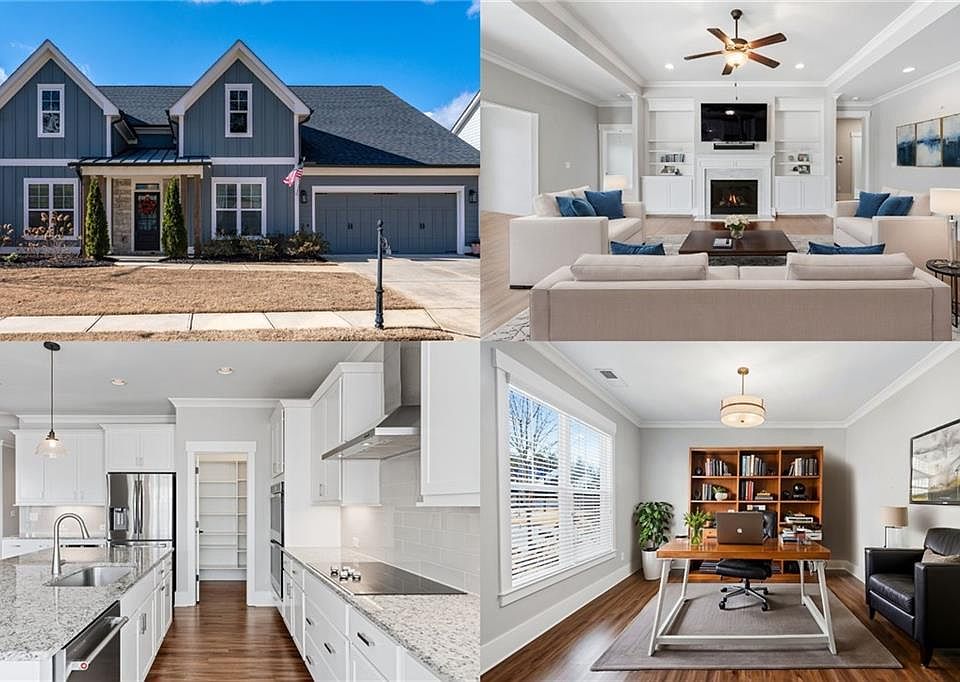 Like-New Craftsman-Style Beauty in the Gated Larkspur Community! This exceptional home is nestled on a corner lot at the end of a tranquil cul-de-sac with no through traffic, offering the perfect blend of peace and convenience. With its striking curb appeal, the property showcases lush landscaping, effortlessly maintained by an HOA that oversees lawn care and a front and back irrigation system—giving you more time to relax and savor life. Step inside to discover a thoughtfully designed layout perfect for entertaining and gathering with your loved ones. The light-filled interior includes formal dining and living rooms, a spacious family room with a tray ceiling, built-ins, and a cozy fireplace, all seamlessly connected to a chef’s dream kitchen. Highlights include crisp white cabinetry, gleaming granite countertops, a large center island/breakfast bar, double ovens, and a charming breakfast nook. The sunroom—a rare builder addition—adds even more space for relaxation and entertaining. The luxurious main-level primary suite features a spa-like bathroom with dual vanities, a beautifully tiled shower, and his and her walk-in closets. Two spacious and light-filled secondary bedrooms and two full baths allow privacy and space for your family and guests. A well-equipped laundry room with a sink and ample cabinetry keeps everything organized. The private backyard is a lush oasis, fully fenced, with a patio ideal for outdoor gatherings. Larkspur offers an array of resort-style amenities, including a clubhouse, pool, pickleball courts, a community garden, and more—all in a highly desirable location with lower Cherokee County taxes. Enjoy proximity to GA-400, shopping, dining, the greenway, and Halcyon. This home and neighborhood truly have it all! Come live your best life! Schedule your private tour today!